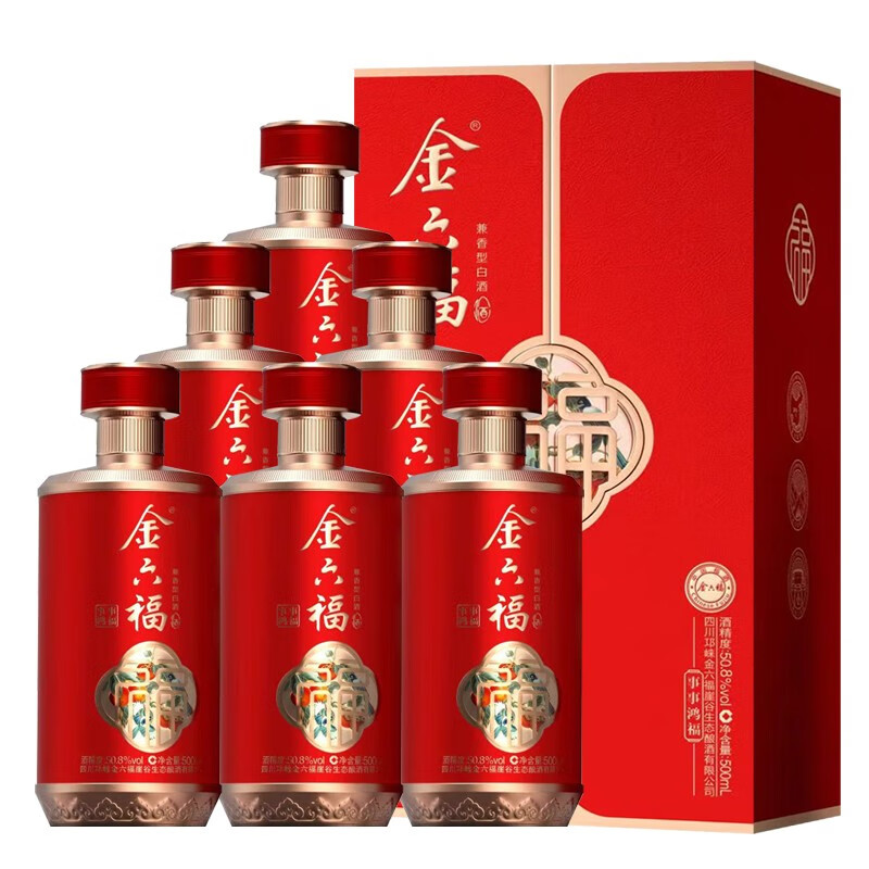金六福事事鸿福 50.8度 浓清兼香型白酒 500ml*6瓶 整箱装 婚宴用酒 整箱6瓶