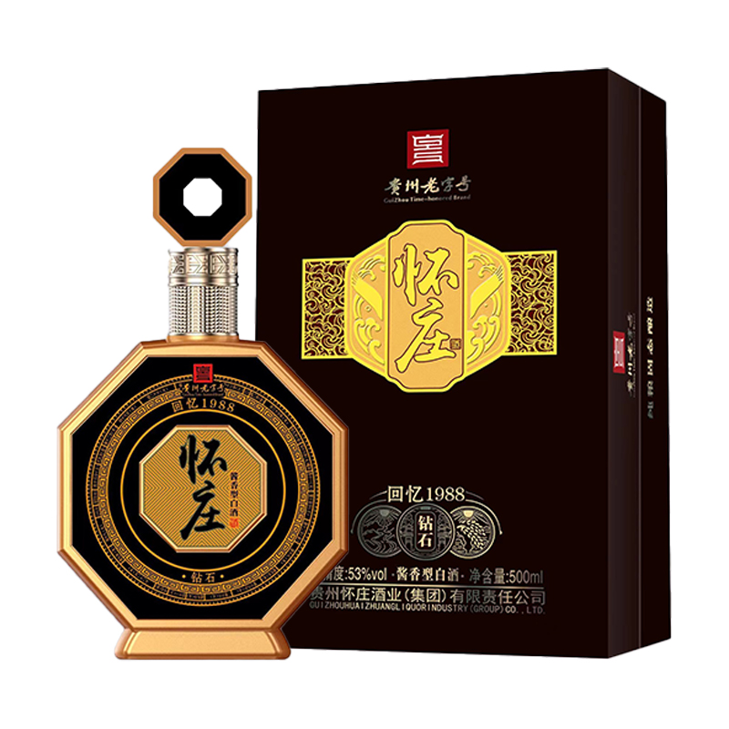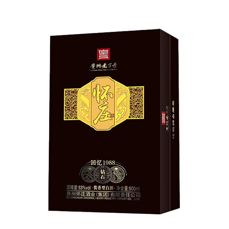 怀庄【贵州老字号】怀庄酒回忆1988钻石纯粮固态酿造53度酱香型白酒 500ml*6瓶整箱