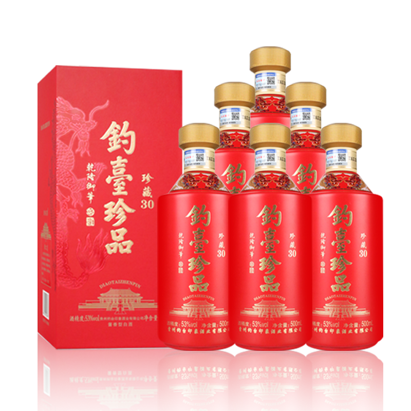 钓台珍品 珍藏30 53度 酱香型白酒 500ml*6瓶 整箱