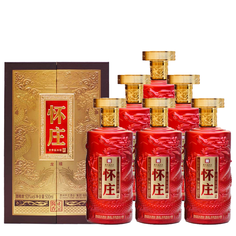 怀庄龙禧 53度 酱香型白酒 纯粮酒口粮酒礼盒 500ml*6瓶 整箱