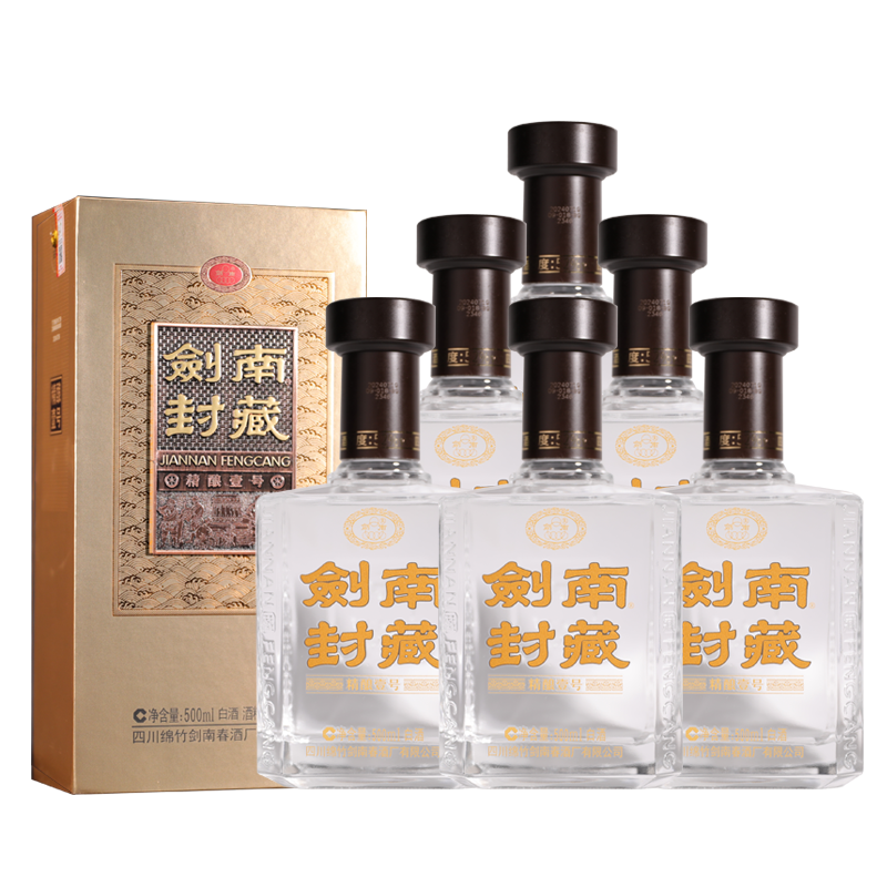 四川绵竹剑南春酒厂出品 剑南封藏 精酿壹号 52度 浓香型白酒 收藏自饮 500ml*6瓶 整箱