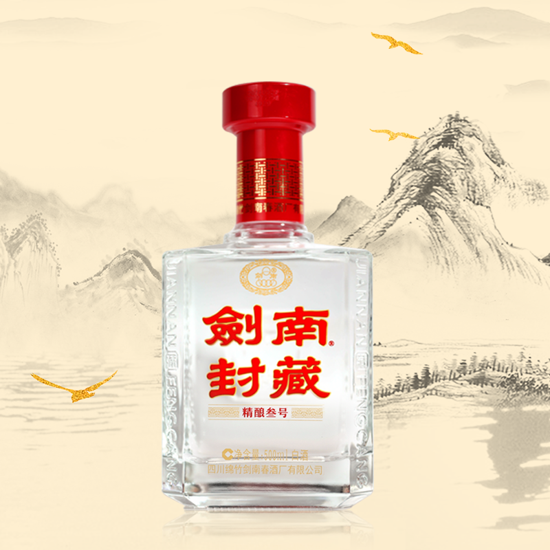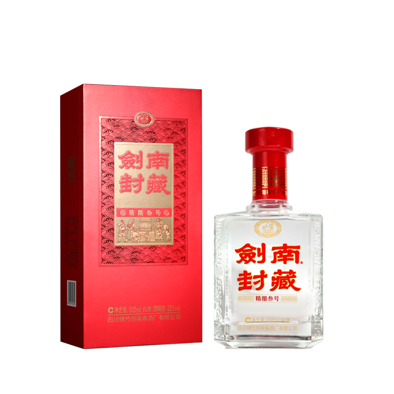 四川绵竹剑南春酒厂出品 剑南封藏 精酿叁号 52度 浓香型白酒 收藏自饮 500ml*6瓶 整箱