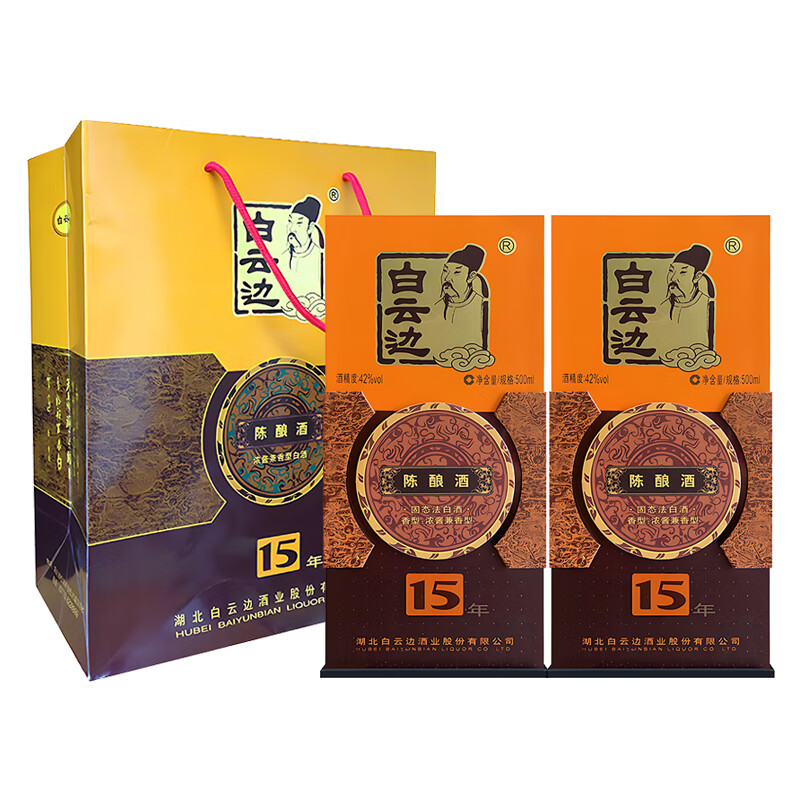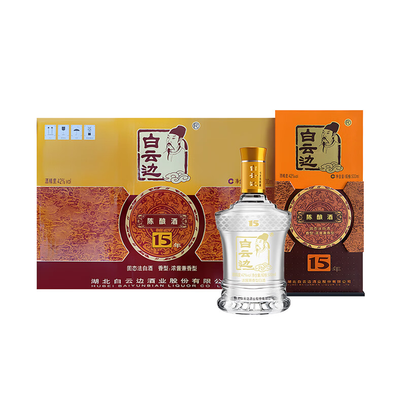 白云边 十五年陈酿 42度 浓酱兼香型白酒 纯粮食白酒 500ml*6瓶 整箱