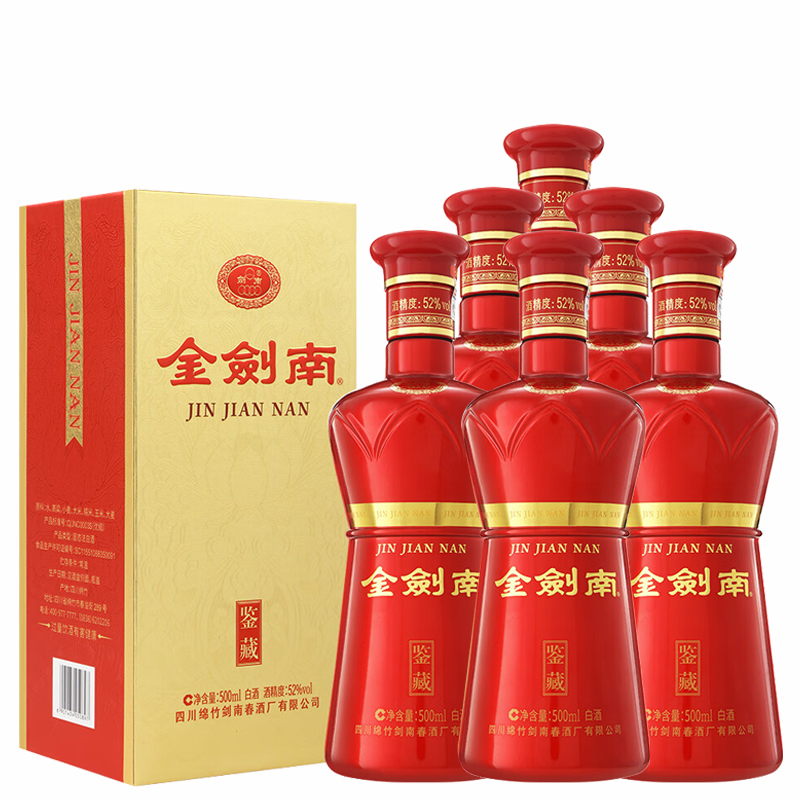 剑南春 金剑南 鉴藏 52度 浓香型白酒 纯粮固态发酵 500ml*6瓶 整箱