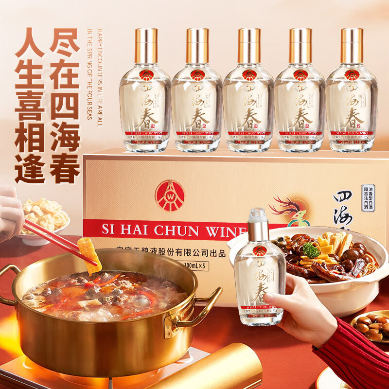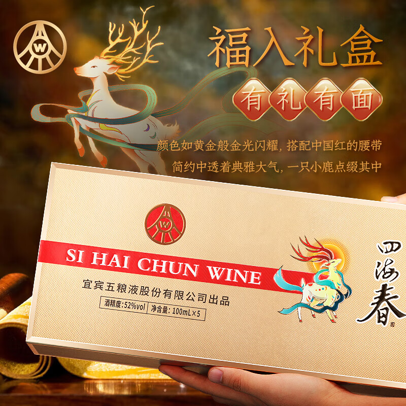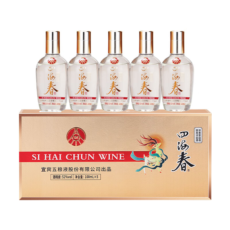 五粮液股份出品 四海春小金条 过年送礼礼盒 小瓶装 聚会 宴请 浓香型 52度 100mL 5瓶*6 整箱装