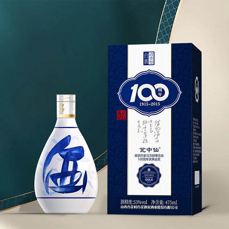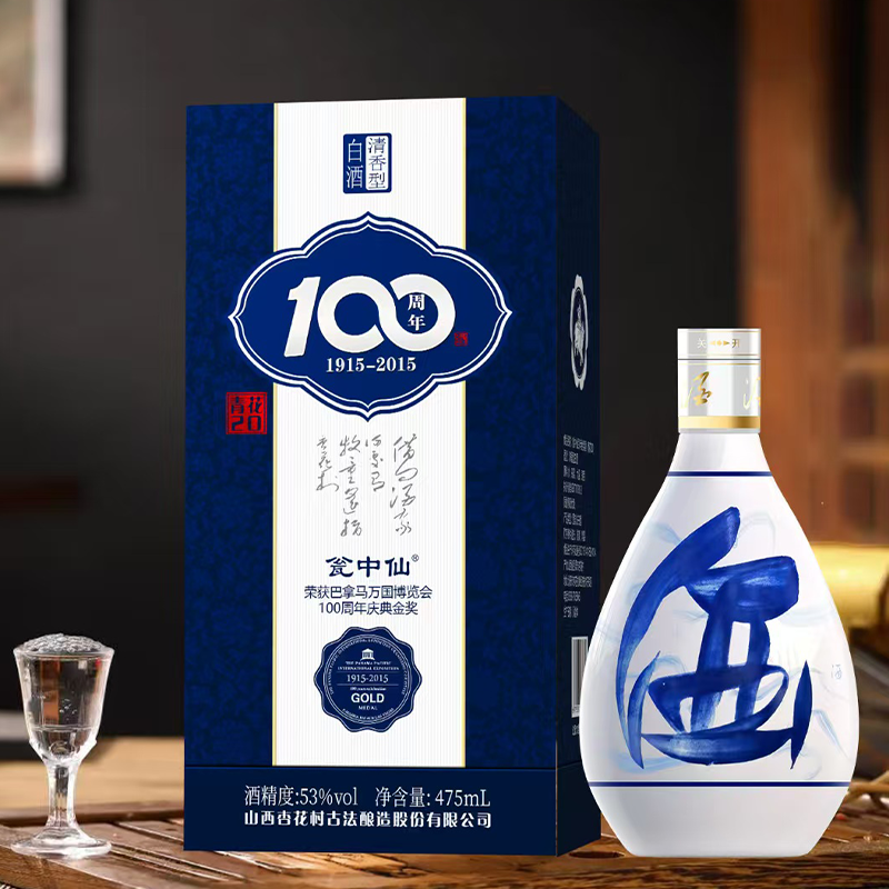 瓮中仙 百年金奖纪念酒(青花20) 53度 清香型白酒 宴请聚会口粮酒 475ml*6 整箱