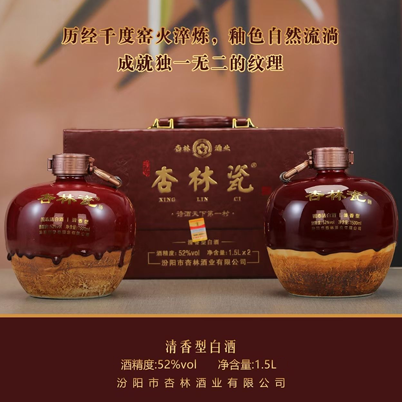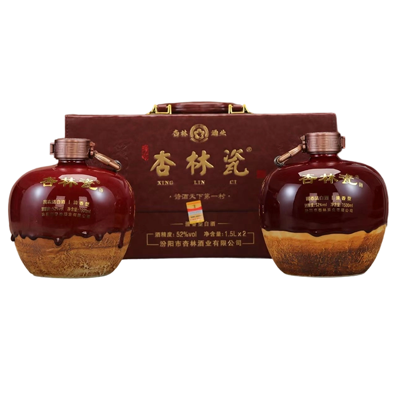 山西杏花村 杏铭泉 杏林瓷礼盒版 清香型白酒 52度 1.5L*2坛 整箱