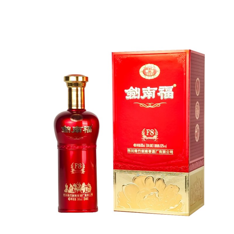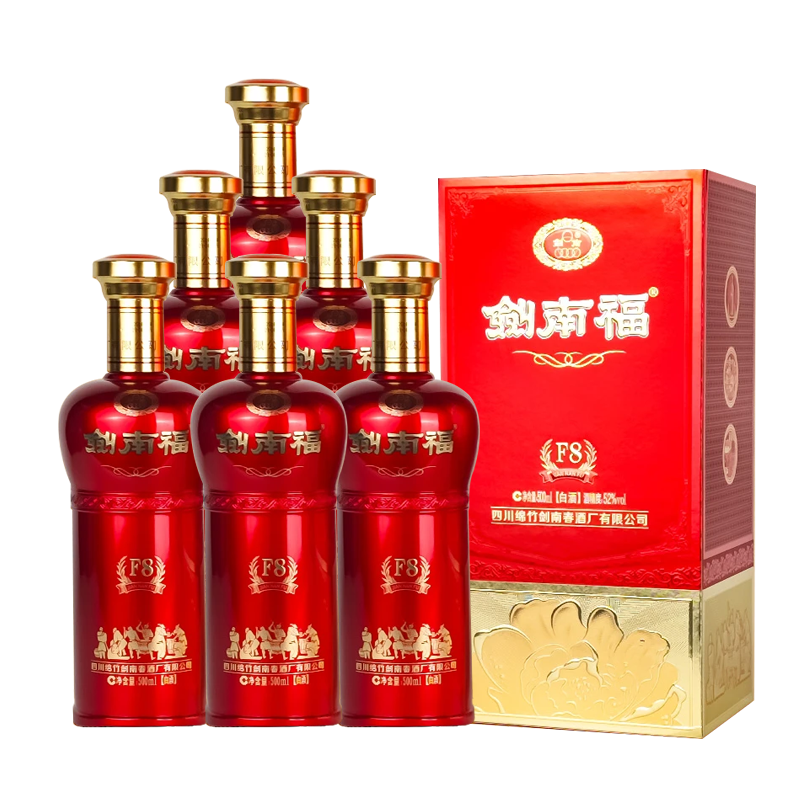 创南春 剑南福F8 浓香型白酒 52度 宴请口粮纯粮酒500ml*6瓶 整箱