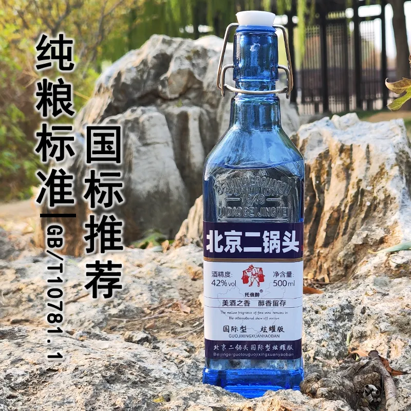 托俍醉 北京二锅头 经典小方瓶 42度 清香型白酒 纯粮食酒 500ml*12瓶 整箱装