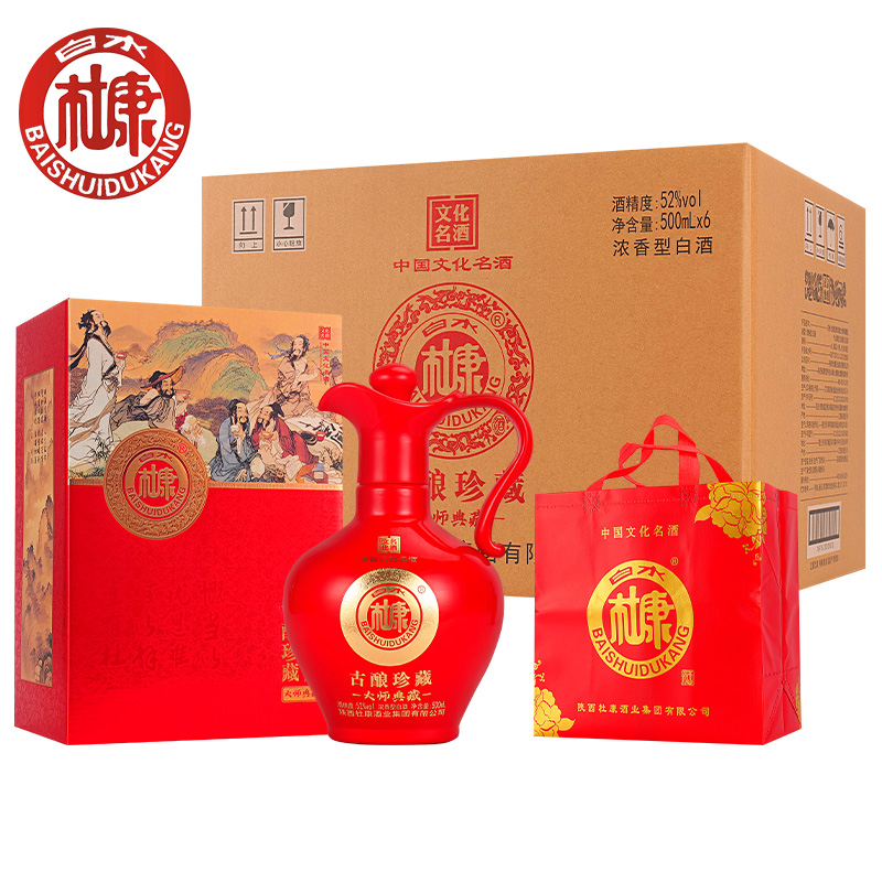 白水杜康 古酿珍藏 大师典藏酒 52度 浓香型白酒 纯粮酿造 收藏送礼自饮 500ml*6瓶 整箱