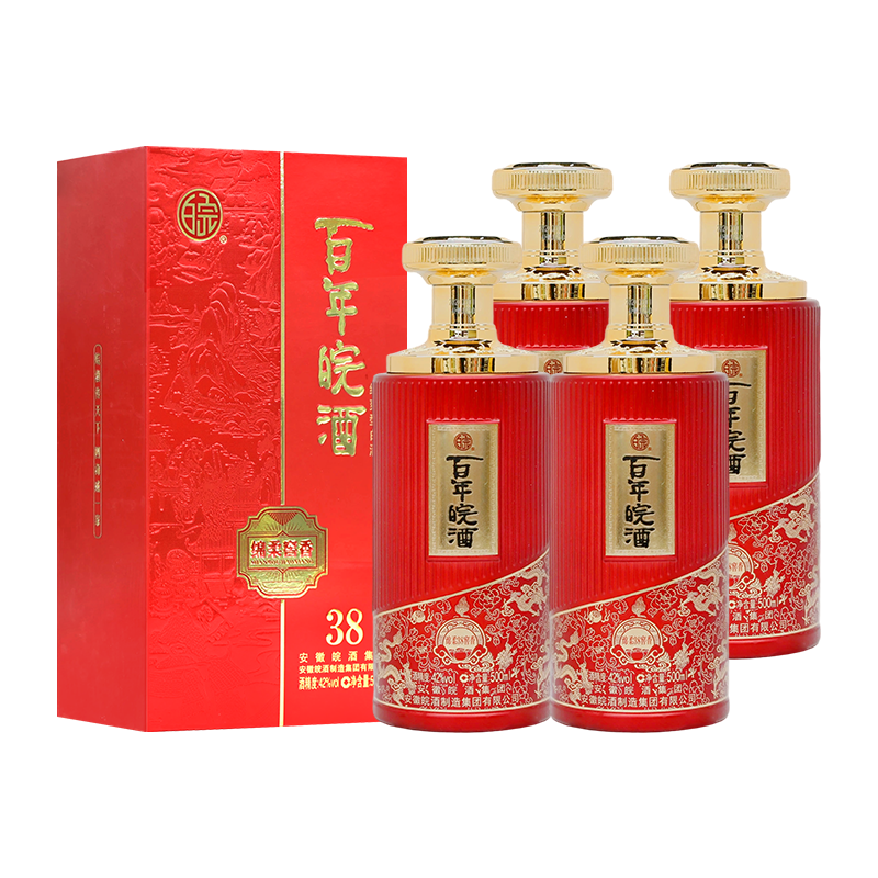 百年皖酒 绵柔38窖香 42度 绵爽型白酒 匠心匠造 纯粮酿造 500ml*4瓶 整箱
