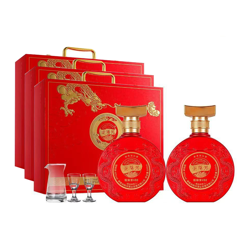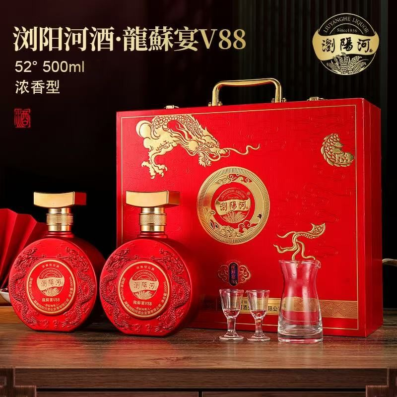 浏阳河龙 苏宴V88 52度 浓香型白酒 匠心匠造 纯粮浓香 500ml*2瓶*3盒 整箱