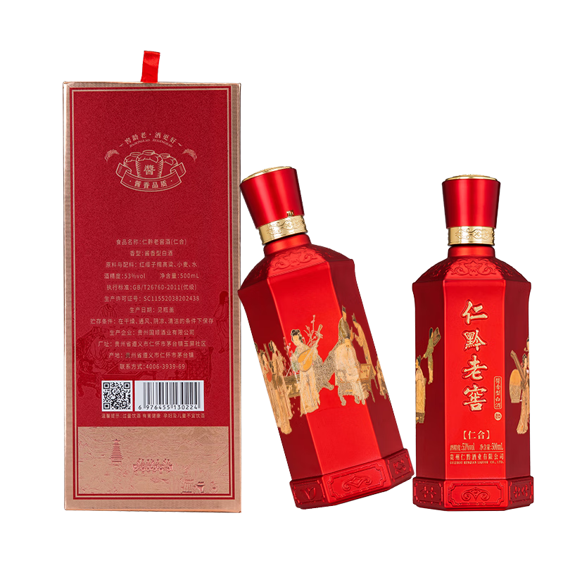 仁黔老窖 仁合 53%vol 酱香型 红色经典喜庆 酱香绵柔口感醇厚 500mL*6瓶 整箱装