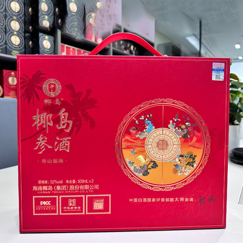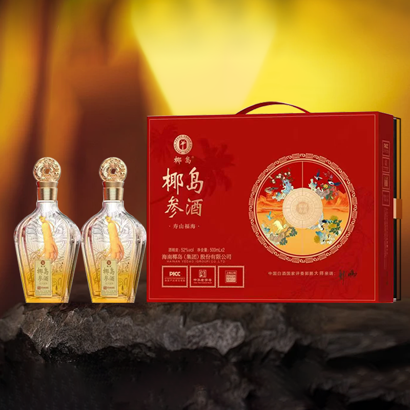 海南椰岛(集团)股份出品 椰岛参酒 寿山福海 中国红 52度 人参入酿 至味无双 琼浆玉液 馈君安康 500ml*2瓶*3盒 整箱装