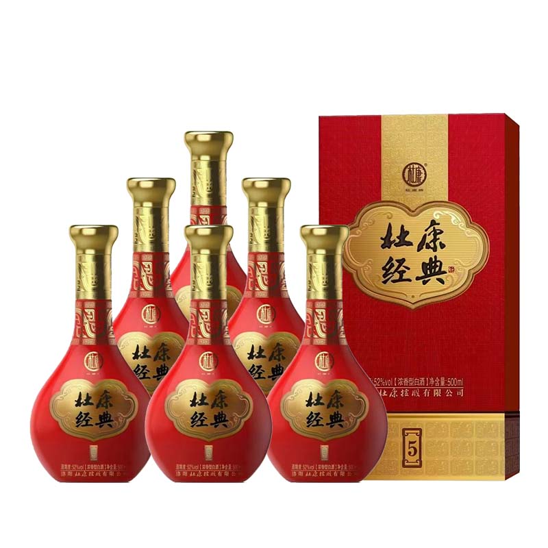 杜康经典5年 52度 浓香型白酒 纯粮酿造 收藏送礼自饮 500ml*6瓶 整箱装