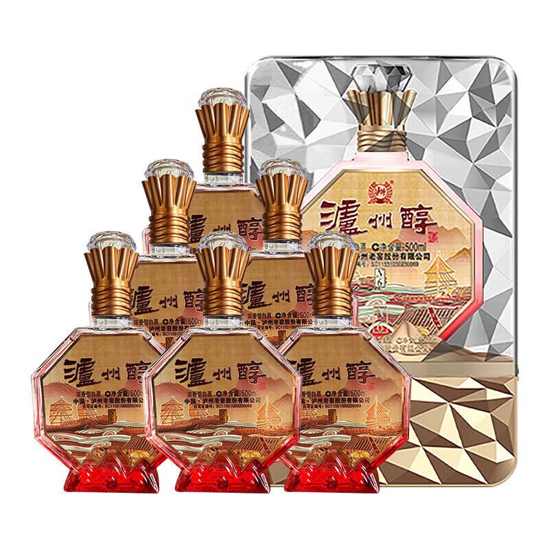 泸州老窖股份 泸州醇酒N6 52度 浓香型白酒 500mL*6瓶 整箱装