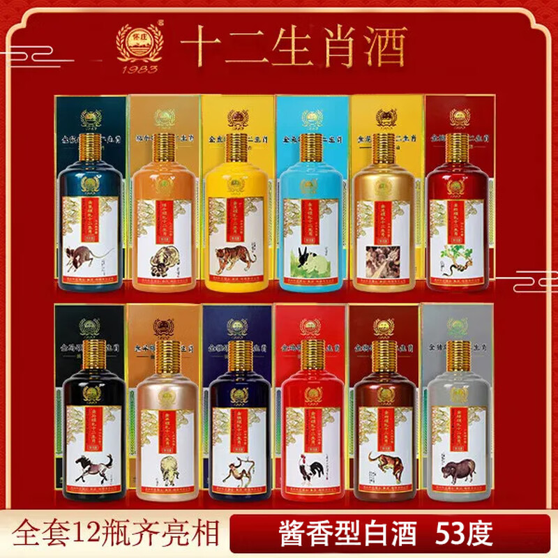 怀庄 贵州老字号 十二生肖酒 53度 酱香型纯粮白酒 宴请送礼 500ml*12瓶 整箱