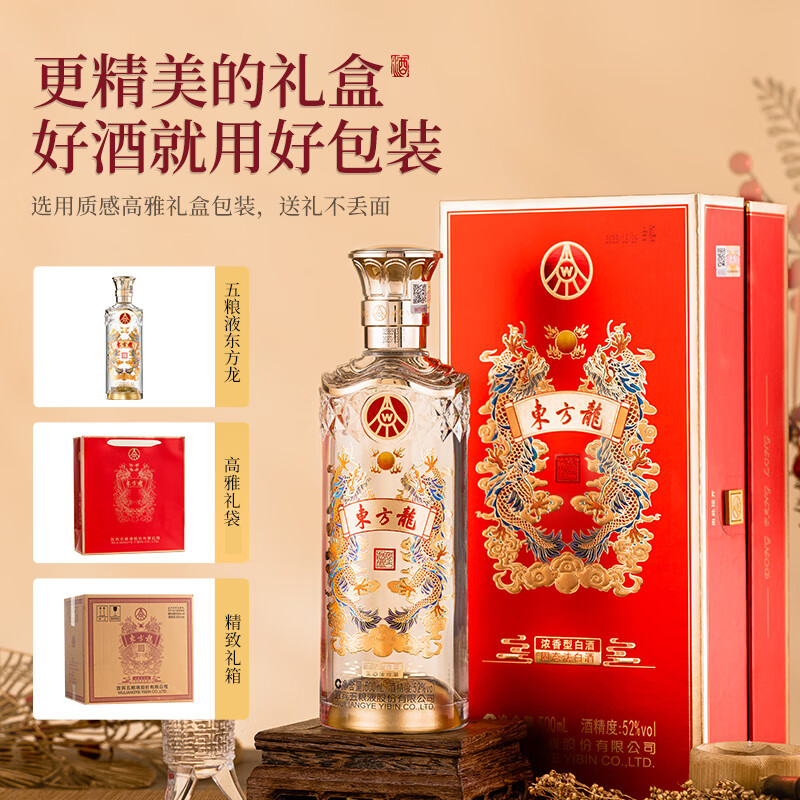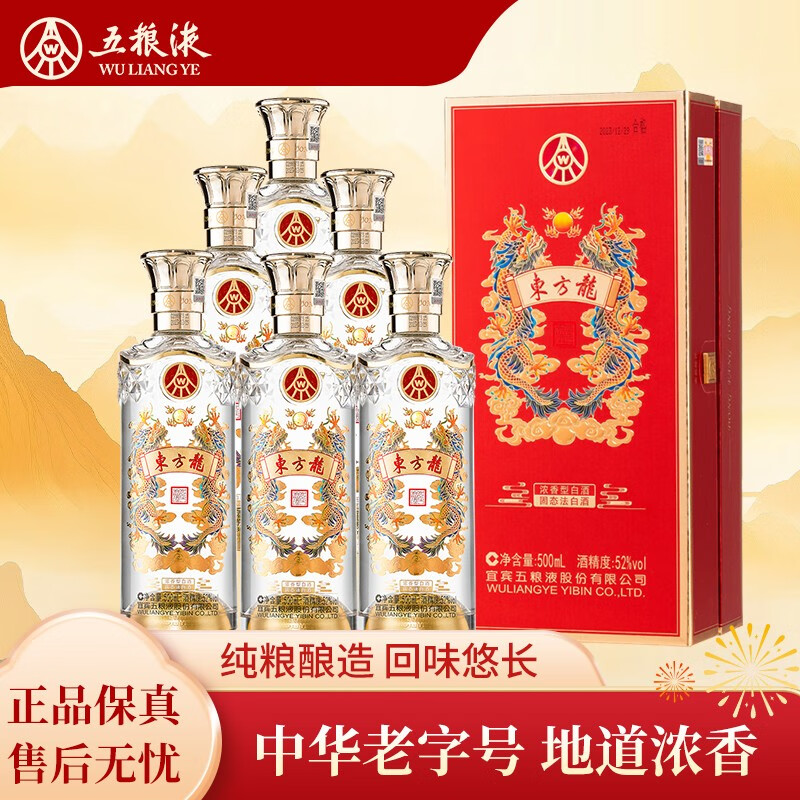 五粮液宜宾总厂生产 东方龙 龙年生肖典藏酒 52度 浓香型白酒 粮食酒 500mL*6瓶 整箱
