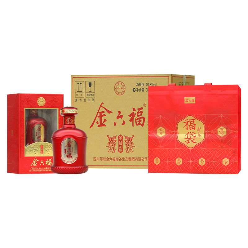 金六福 龙脉 40.8度 兼香型白酒 纯粮食 婚宴喜酒 口粮白酒 过节送礼 500mL*6瓶 整箱