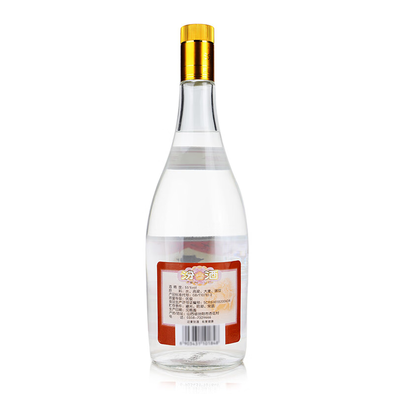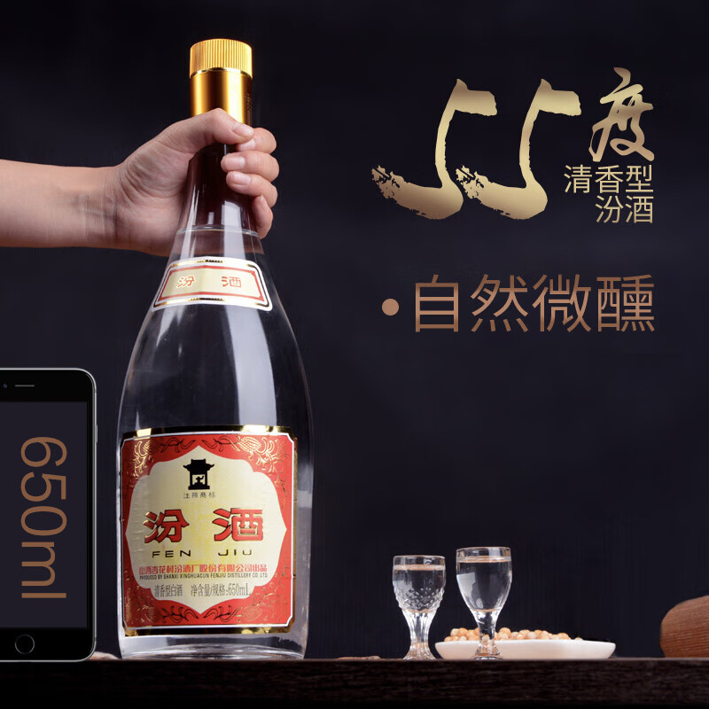 汾酒金盖玻汾酒 55度 清香型白酒 山西杏花村 纯粮黄盖 650m*6瓶 整箱装