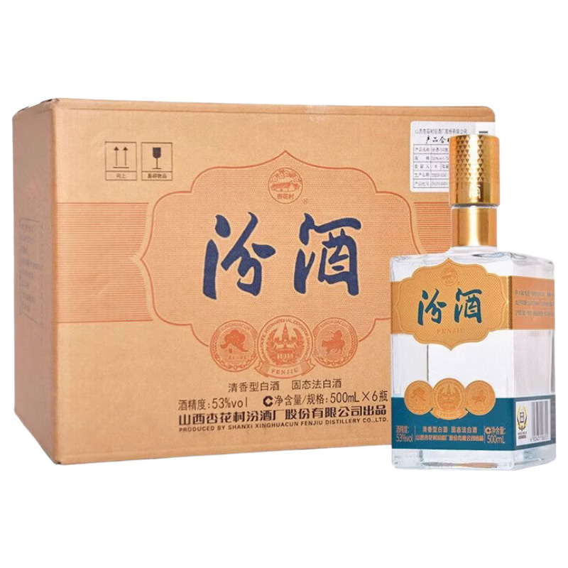 汾酒巴拿马金奖小方瓶蓝 53度 清香型口粮酒白酒 500ml*6瓶 整箱装