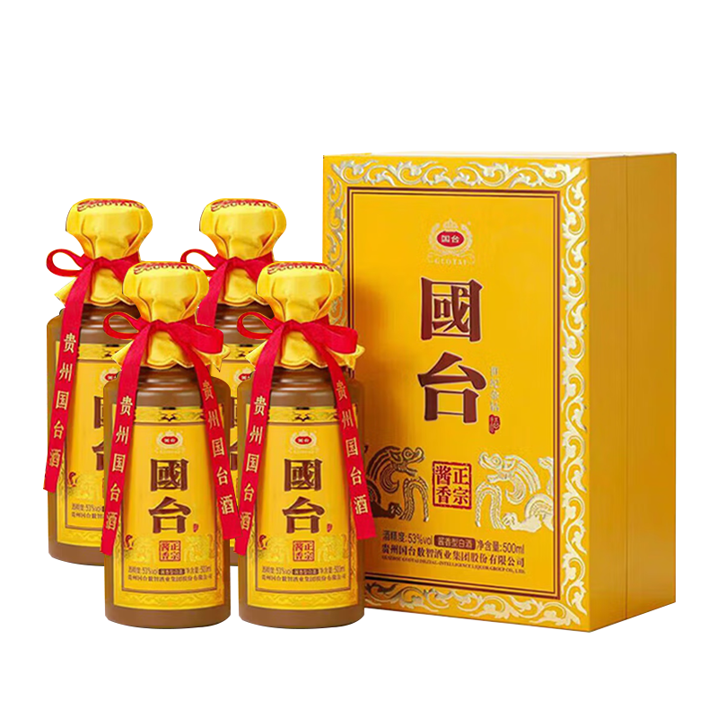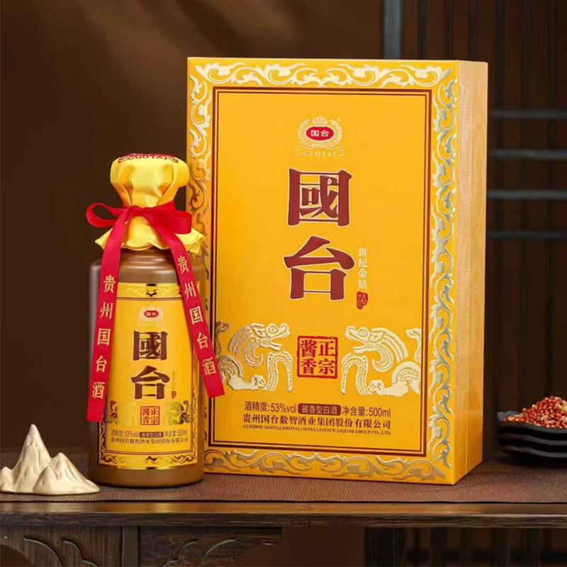贵州国台酒 世纪金钻 53度 酱香型白酒 商务宴请 佳节礼盒 收藏摆台 500mL*4瓶 整箱装