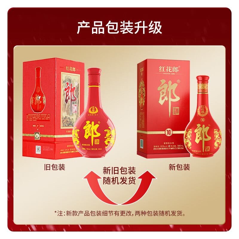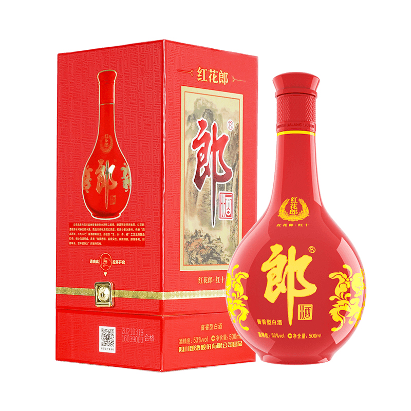 郎酒 红花郎 10年 53度 酱香型白酒 红花国色 红红火火 500ml*6瓶 整箱(新老包装随机发货)